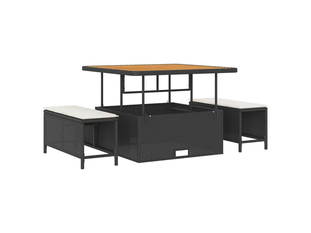 - Stabilita z oceli a akácie: S práškově lakovanými ocelovými nohami a akáciovým dřevěným povrchem, tato souprava zajišťuje robustní stabilitu a přidává přirozenou eleganci. Tyto komponenty také zajišťují trvanlivost a vizuální přitažlivost, díky čemuž souprava správně drží v jakémkoli venkovním prostředí.
