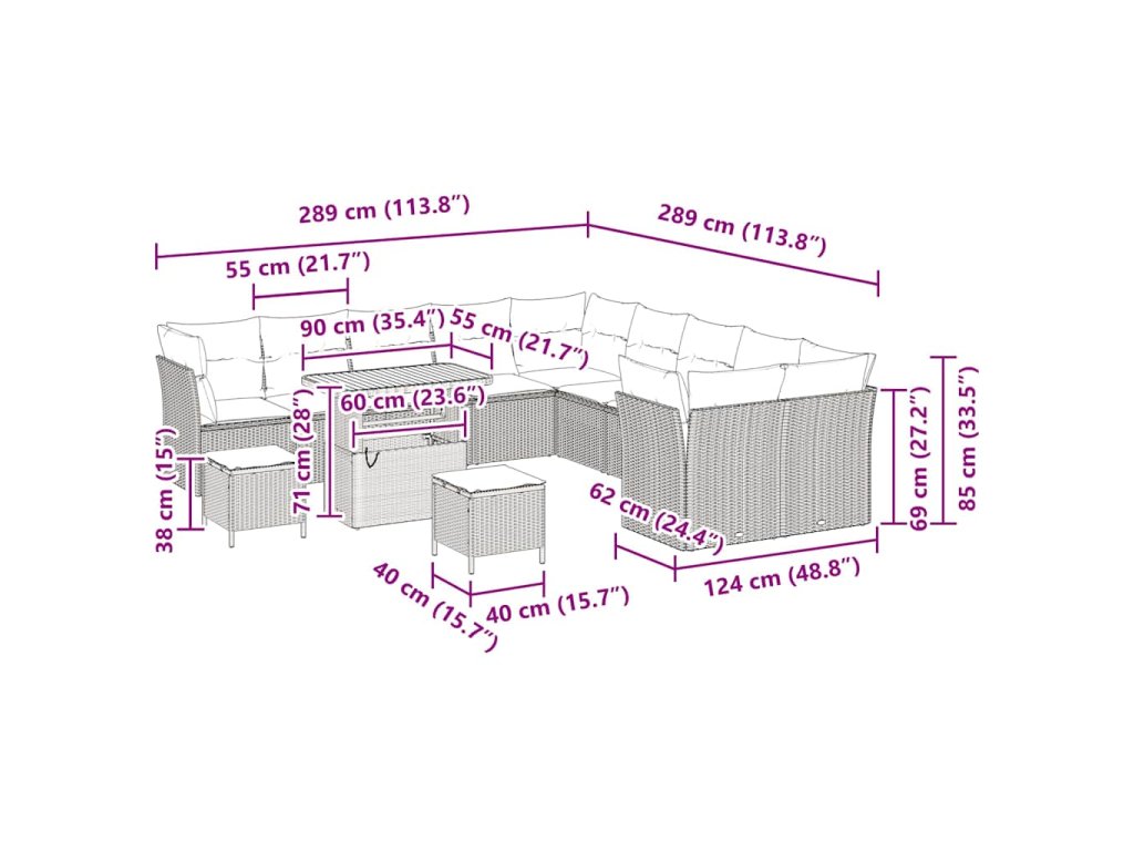 Sada zahradních pohovek 13 pcs Šedá polyratan 3361548