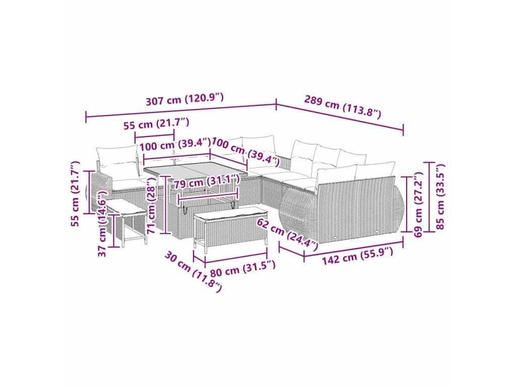 Sada zahradních pohovek 13 pcs Šedá polyratan 3361928
