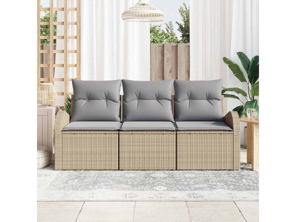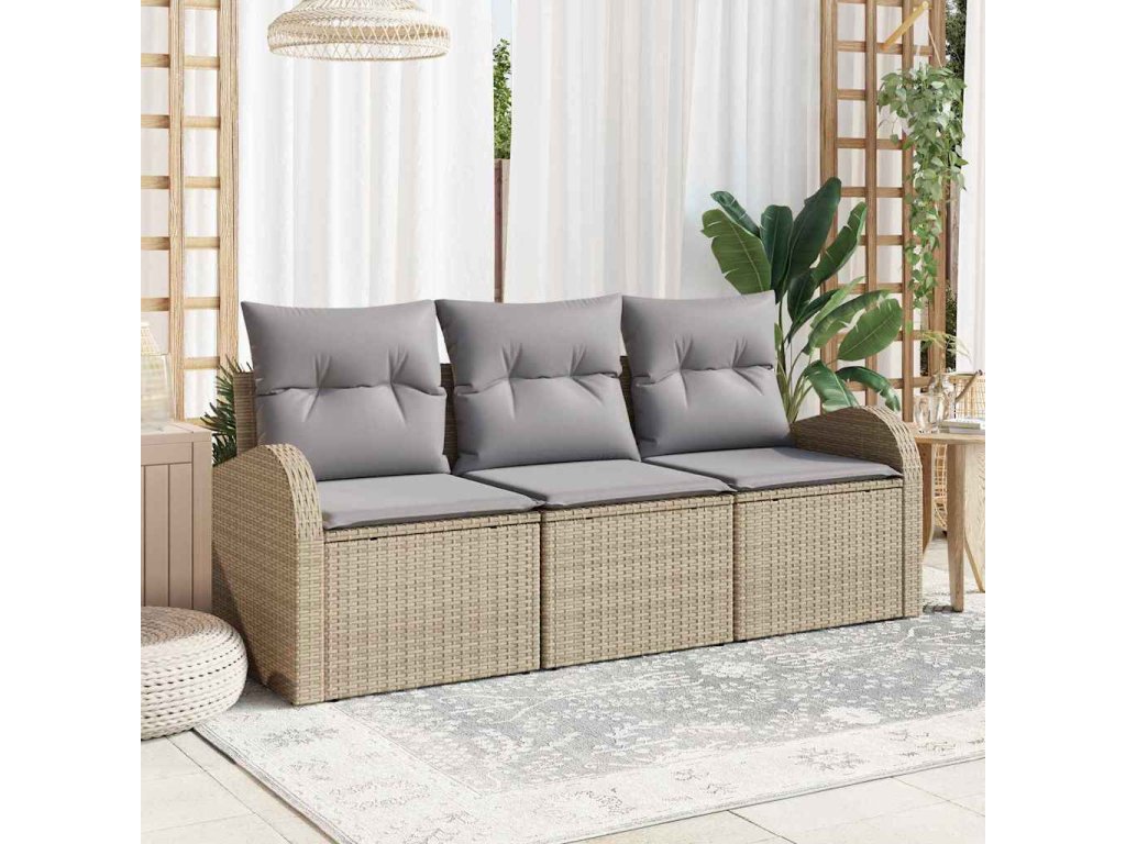 Sada zahradních pohovek 3 pcs béžová a světle šedá Poly ratan 3354569