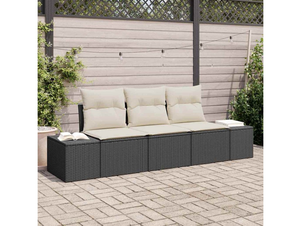 Sada zahradních pohovek 3 pcs Černá a krémová polyratan 3355586