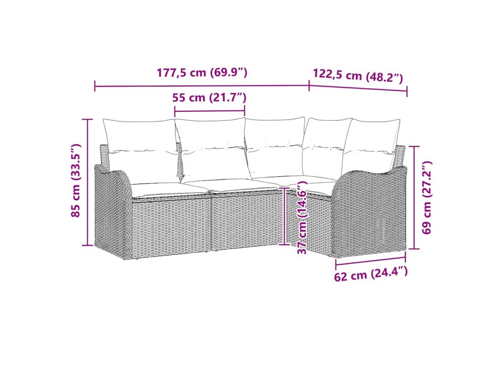 - 4 x sedací polštář: 55 x 55 cm (D x Š)