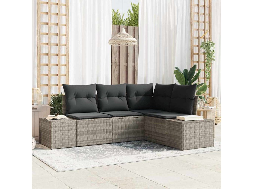 Sada zahradních pohovek 4 pcs Světle šedá polyratan 3347042