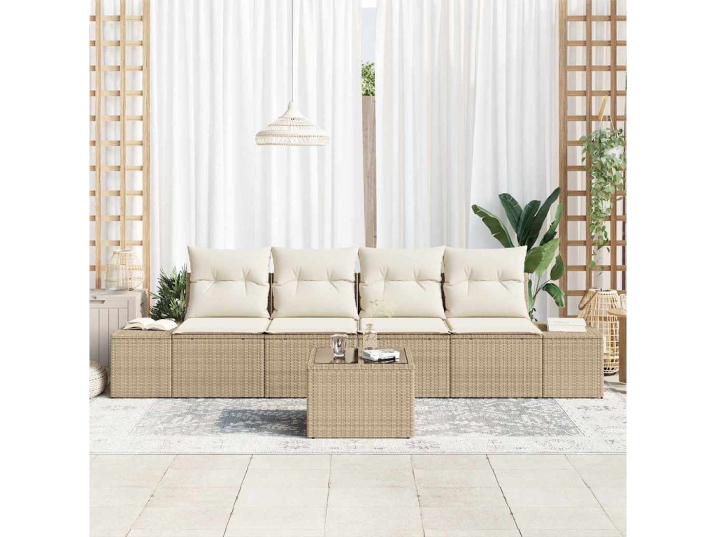 Sada zahradních pohovek 5 pcs Béžová a krémová polyratan 3355600