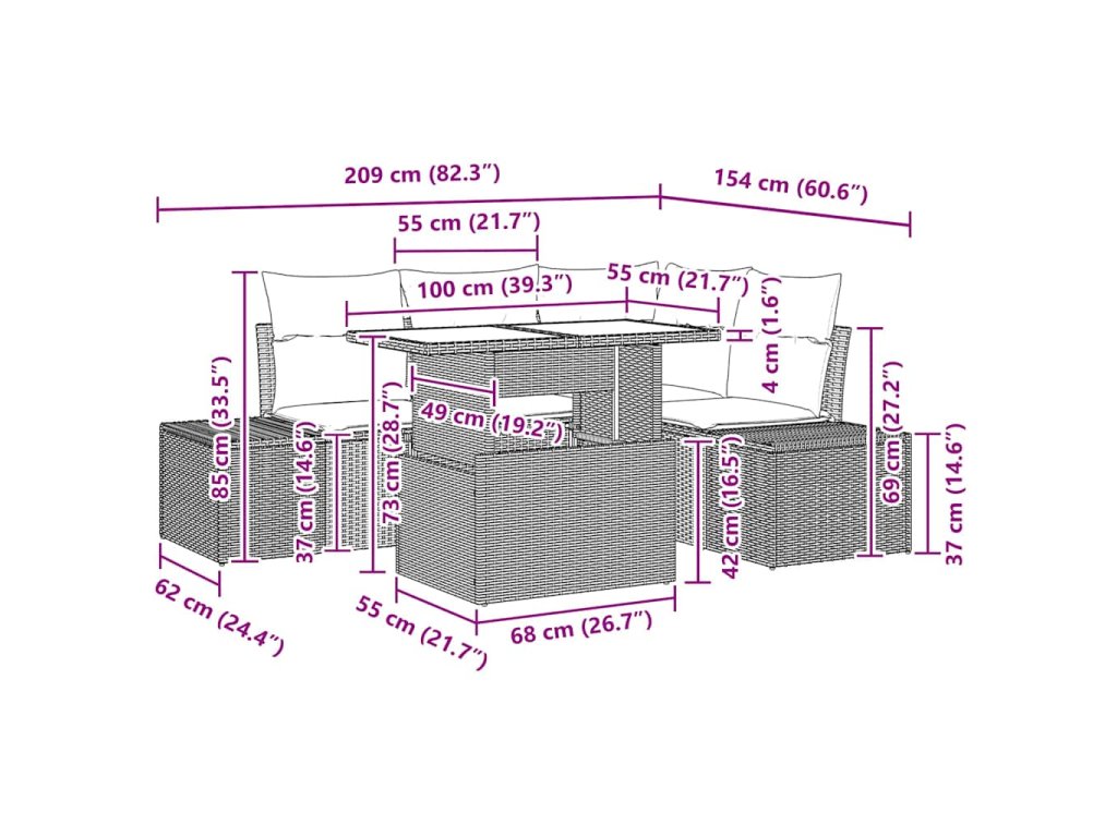 - 1 x Rohové sedadlo: 62 x 55 x 85 cm (D x Š x V)