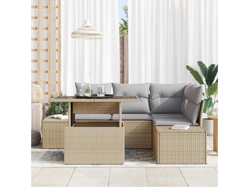 Sada zahradních pohovek 5 pcs Béžová a Světle šedá polyratan 3349176