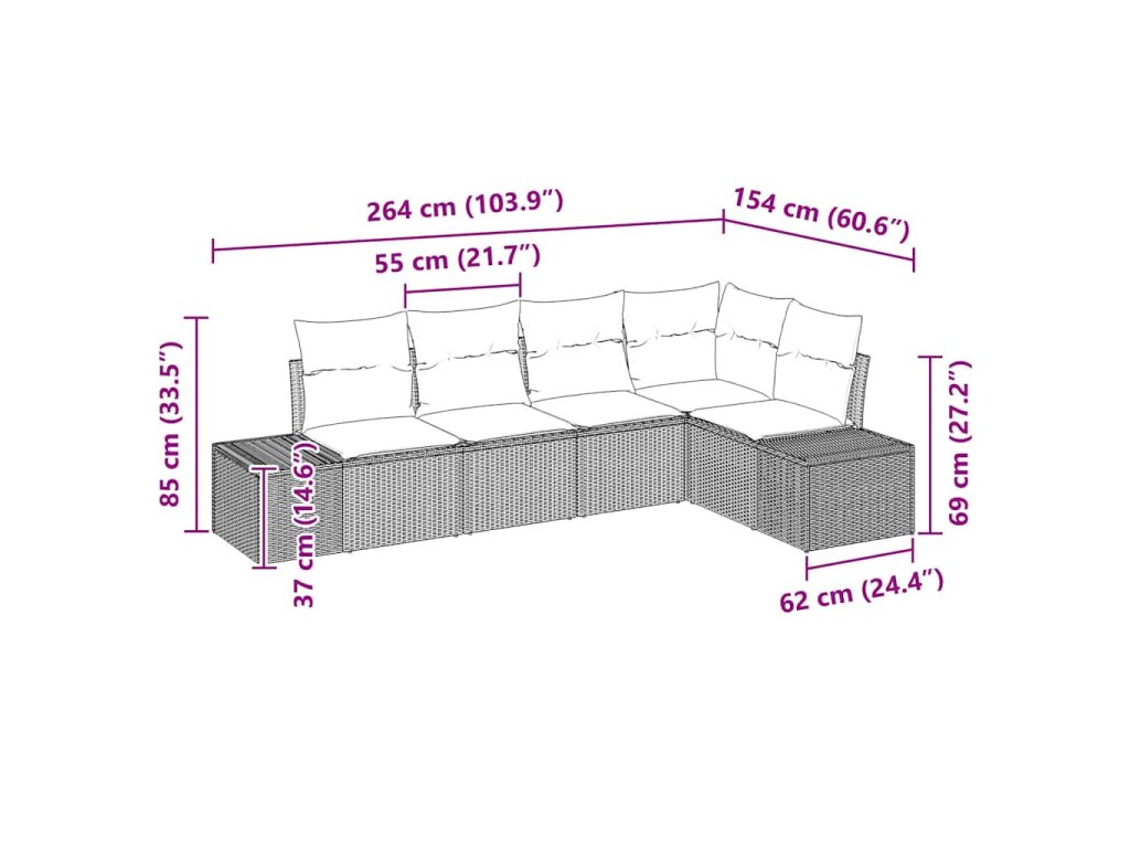 - Zahrnuté komponenty: Souprava obsahuje praktickou voděodolnou tašku pro uložení vašich venkovních věcí. Každý modul pohovky je vybaven polštářem vyplněným pěnou pro pohodlí při lenošení. Tyto komponenty nejen zvyšují užitečnost soupravy, ale také obohacují venkovní zábavu.