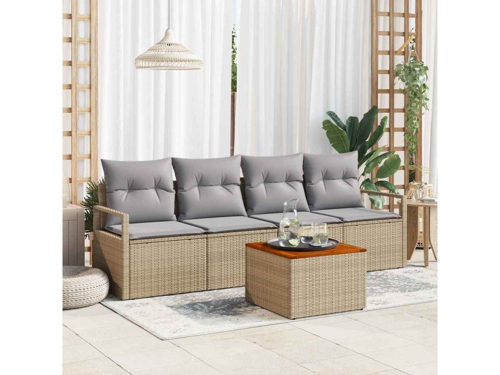 Sada zahradních pohovek 5 pcs Béžová a Světle šedá polyratan 3356306