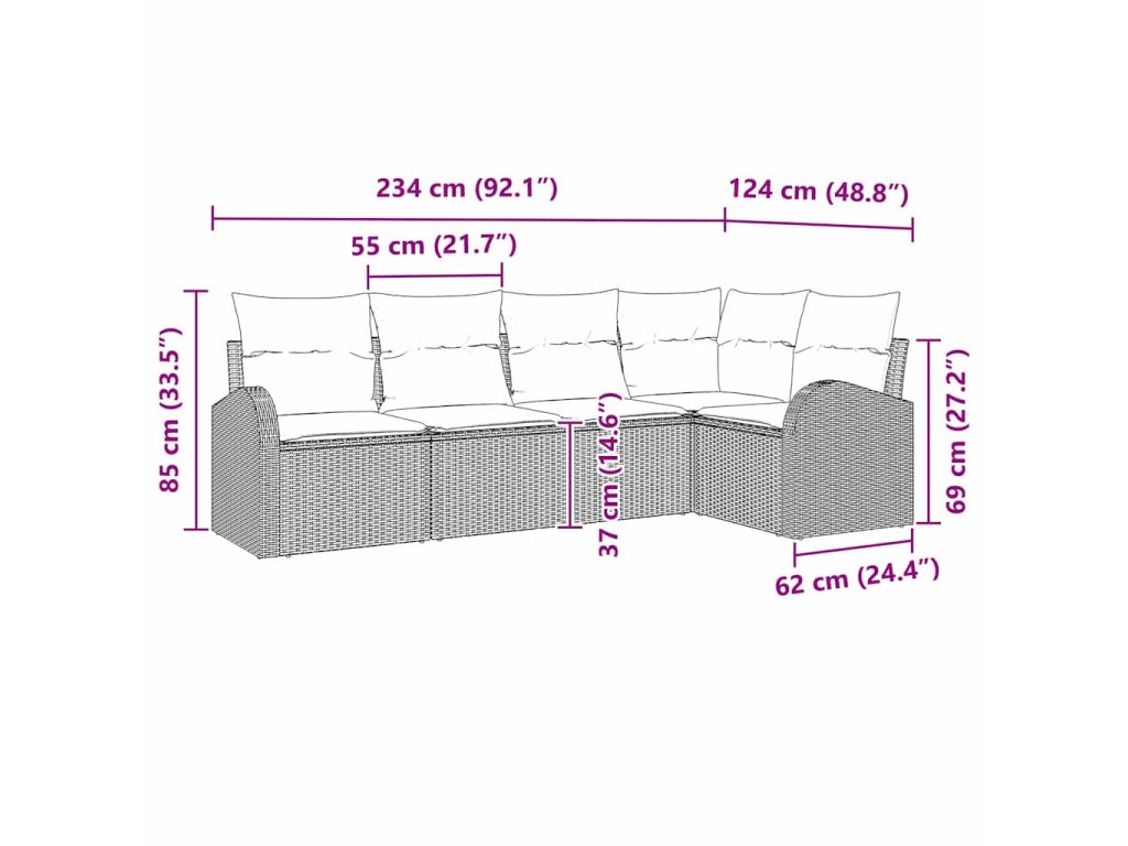 Tato zahradní pohovková sada přináší příjemnou atmosféru do každého venkovního prostoru, jako jsou terasy, dvorky nebo zahrady. Její modulární design vám dává možnost přizpůsobit si uspořádání sedadel pro různé příležitosti – od malých setkání po velké party. S moderním stylem kombinujícím jednoduchost a funkčnost vám tato sada skvěle zapadne do současného venkovního prostředí. Spojuje styl a praktičnost a poskytuje pohodlné místo pro odpočinek a socializaci.