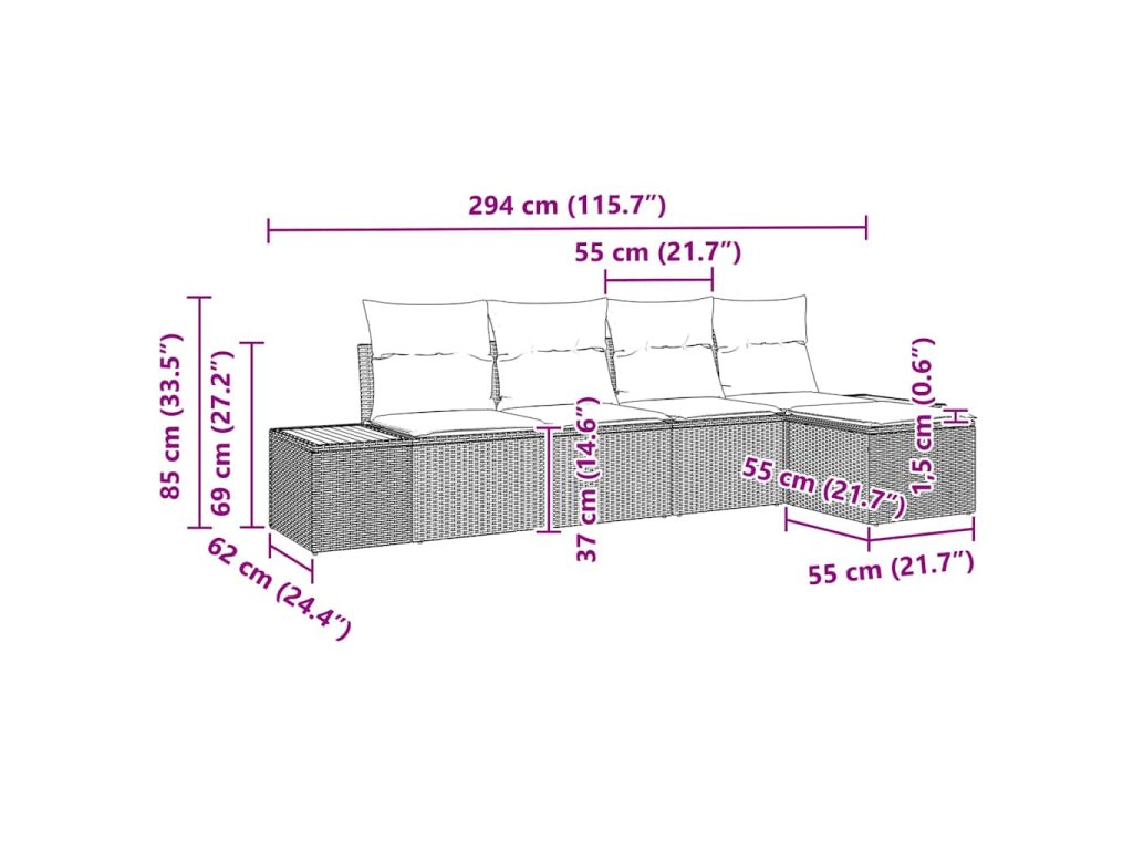 - Celkové rozměry: 294 x 117 x 85 cm (D x Š x V)