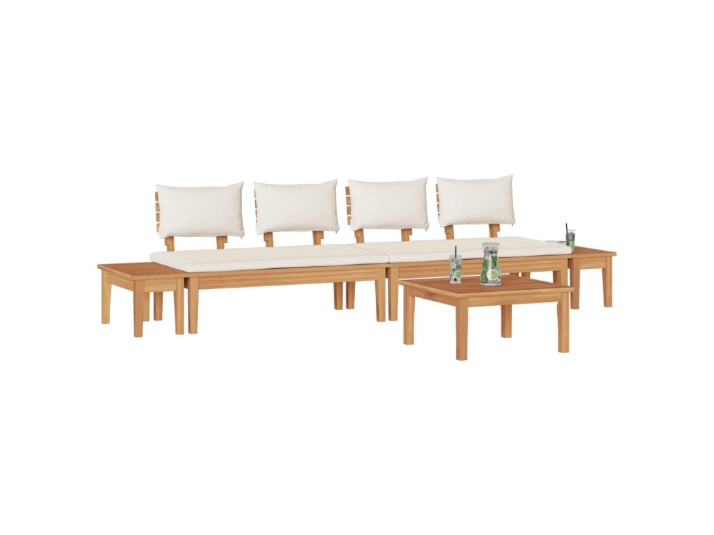 - Součásti zahrnuté v sadě Obsahuje pohodlné polštáře s výplní z paměťové pěny, které poskytují maximální komfort. Pevná teaková deska a dekorativní polštáře doplňují relaxační zážitek, ideální pro každého uživatele.