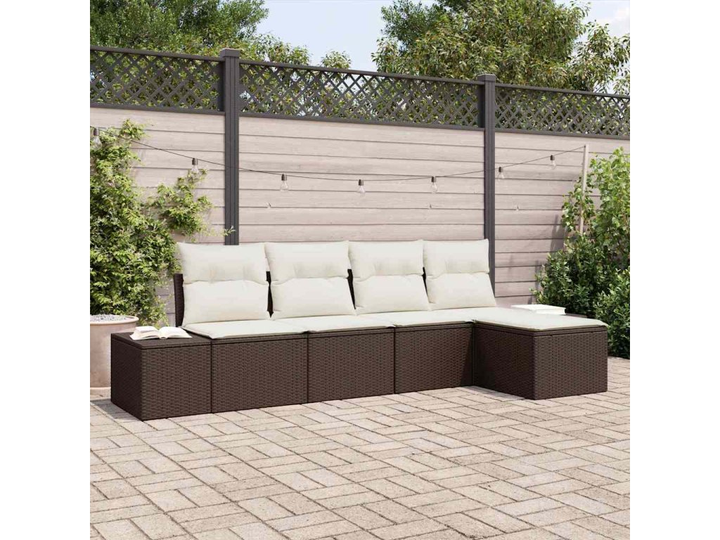 Sada zahradních pohovek 5 pcs Hnědá a krémová polyratan 3355687