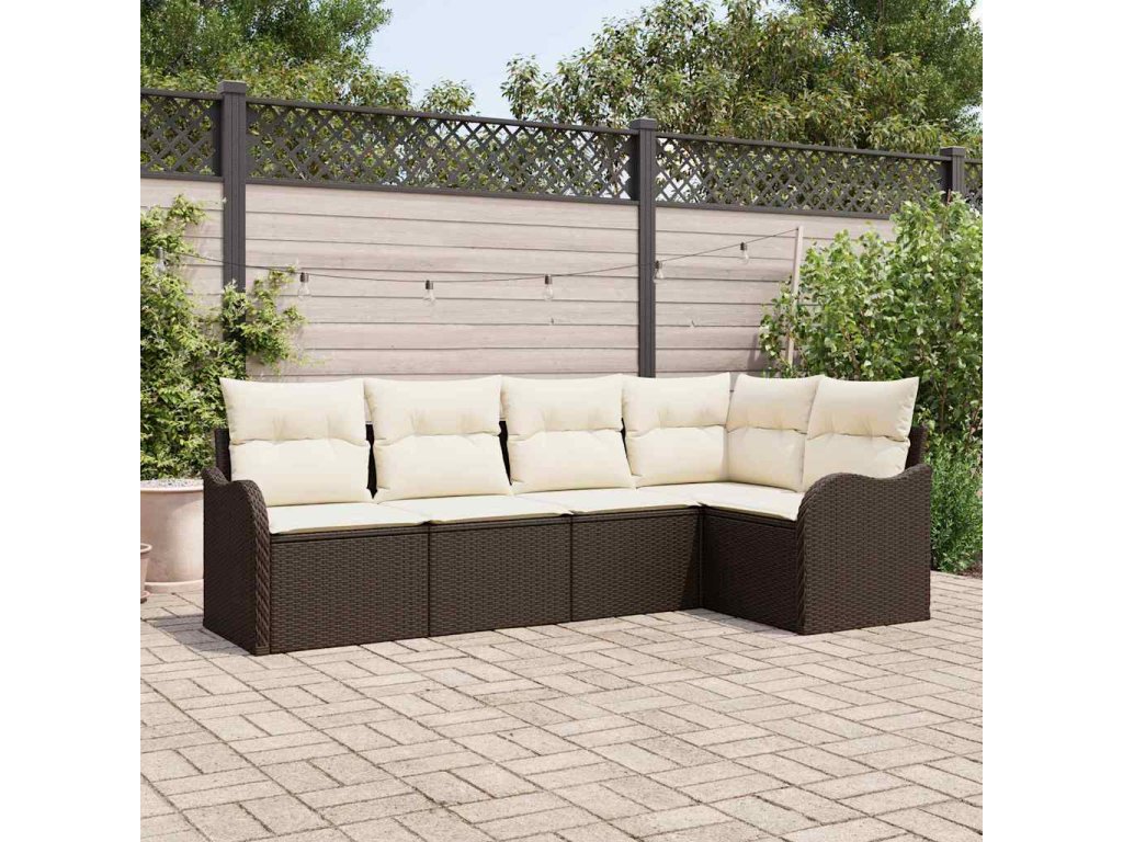 Sada zahradních pohovek 5 pcs Hnědá polyratan 3345698