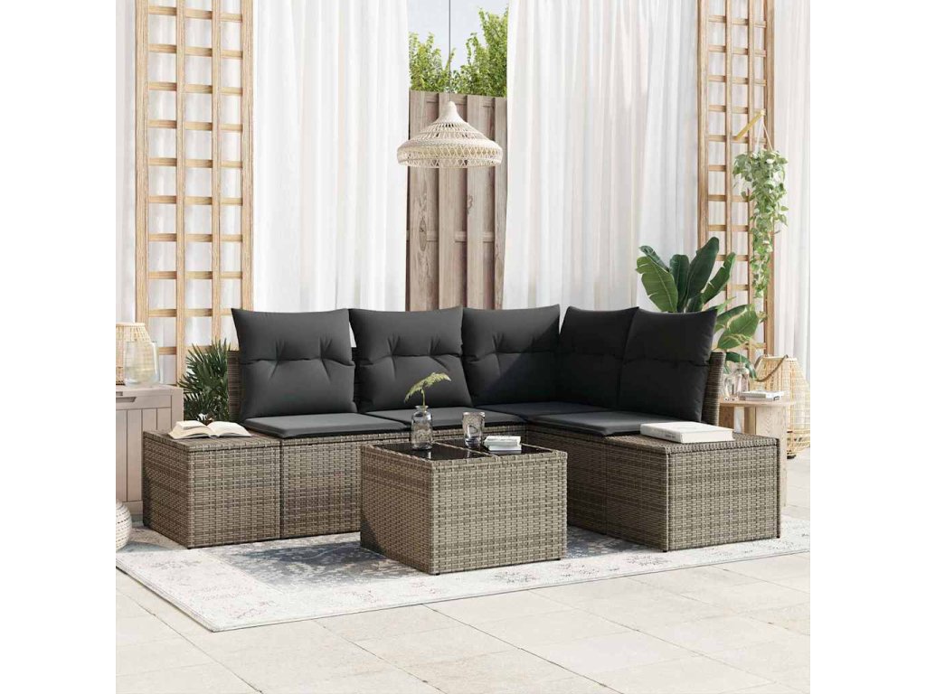 Sada zahradních pohovek 5 pcs Šedá polyratan 3347049