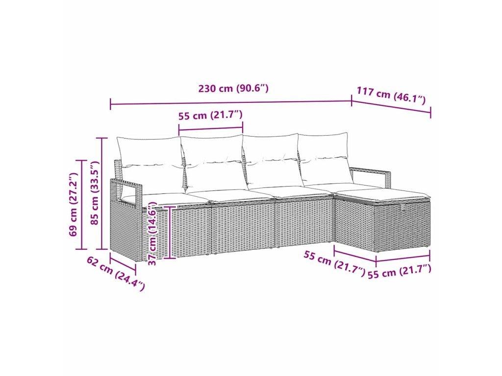 - Funkční komponenty: Se stylovým zázemím, sedací set má odnímatelné polštáře se zipem, které se snadno čistí. Opěrky rukou z poly ratanu přidávají pohodlí a eleganci, zatímco práškově lakovaný ocelový rám zajišťuje spolehlivost.