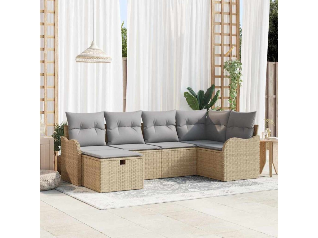 Sada zahradních pohovek 6 pcs béžová a světle šedá Poly ratan 3358979