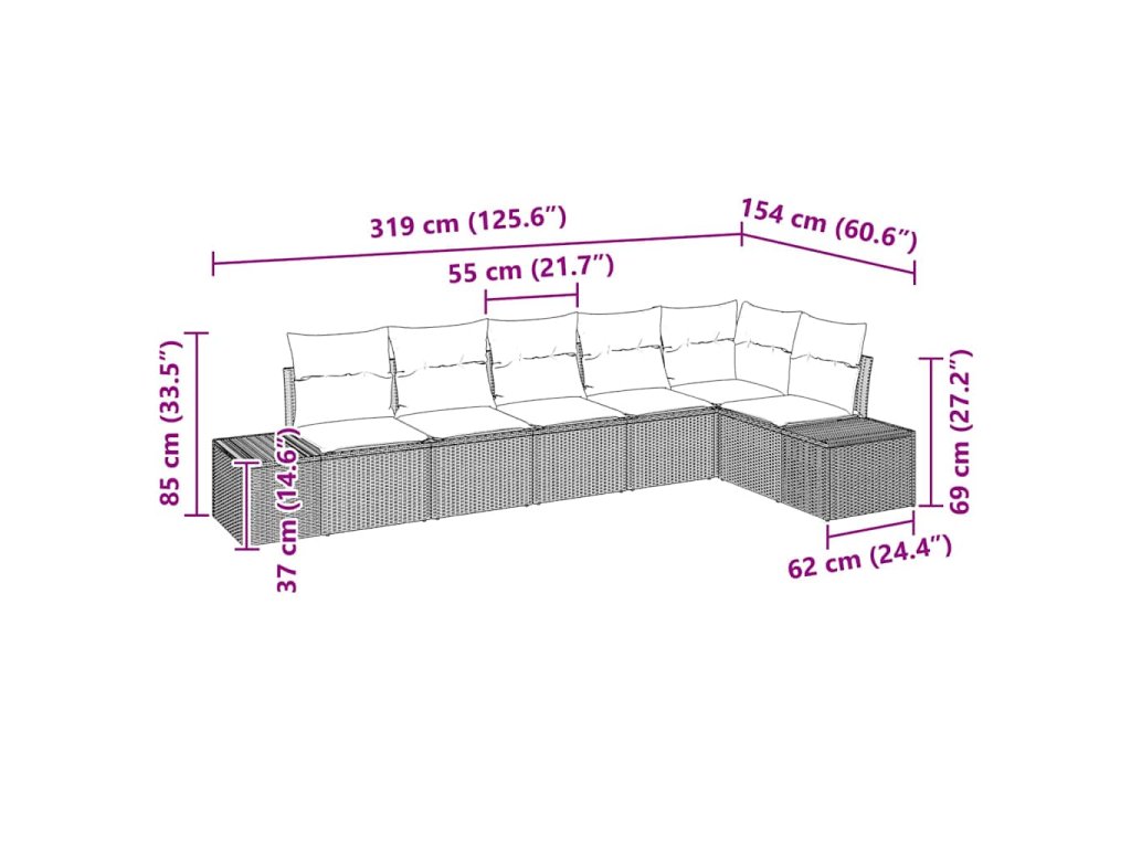 Tento modulární zahradní gauč na první pohled sladí moderní vzhled s praktičností, takže se skvěle hodí do jakékoli zahrady nebo outdoorového prostoru. Elegantní design vyniká čistými liniemi a multifunkčností, přesně jak se nosí v moderním bydlení. Je ideálním kouskem pro venkovní nadšence, kombinuje skvělý vzhled s funkčností a poskytuje luxusní místo na relaxaci. Skládá se z různých modulů, což umožňuje úpravu podle vašich představ a potřeb. Tento set dodává šarm a je perfektní pro setkání s přáteli nebo klidné chvíle o samotě, přičemž nabízí pohodlí i odolnost.