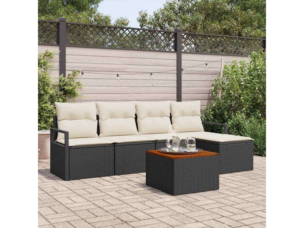 - Komplexní materiály: Pohovka spojuje odolný poly ratan s masivním akáciovým dřevem pro perfektní rovnováhu síly a elegance. Akáciové dřevo dodává přírodní nádech a skvěle ladí s jakýmkoli zahradním stylem. Materiály odolné vůči dešti, slunci a času zaručují, že tento set bude vaším společníkem na každém výletu venku.