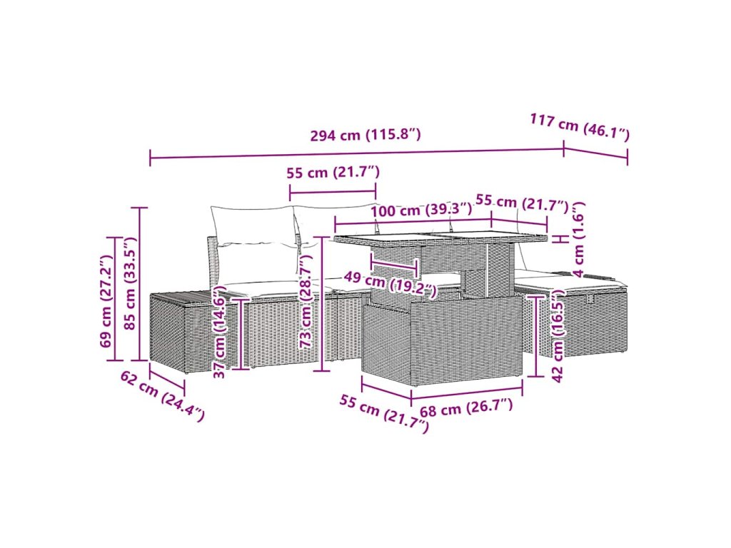 - přirozená všestrannost: Každý díl může sloužit různým účelům, jako úložný prostor a pohodlné sezení. Ideální do zahrad, teras nebo patia, set se snadno přizpůsobí různým stylům.