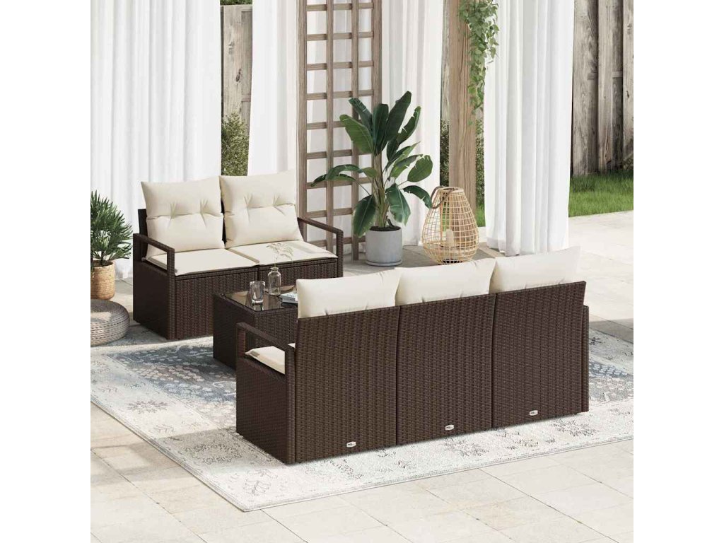 Sada zahradních pohovek 6 pcs Hnědá a krémová polyratan 3354927