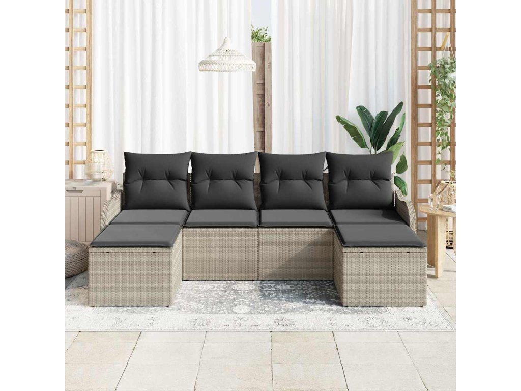 Sada zahradních pohovek 6 pcs Světle šedá Poly ratan 3345812