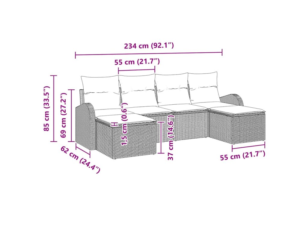 Sada zahradních pohovek 6 pcs Světle šedá Poly Ratan 3346152