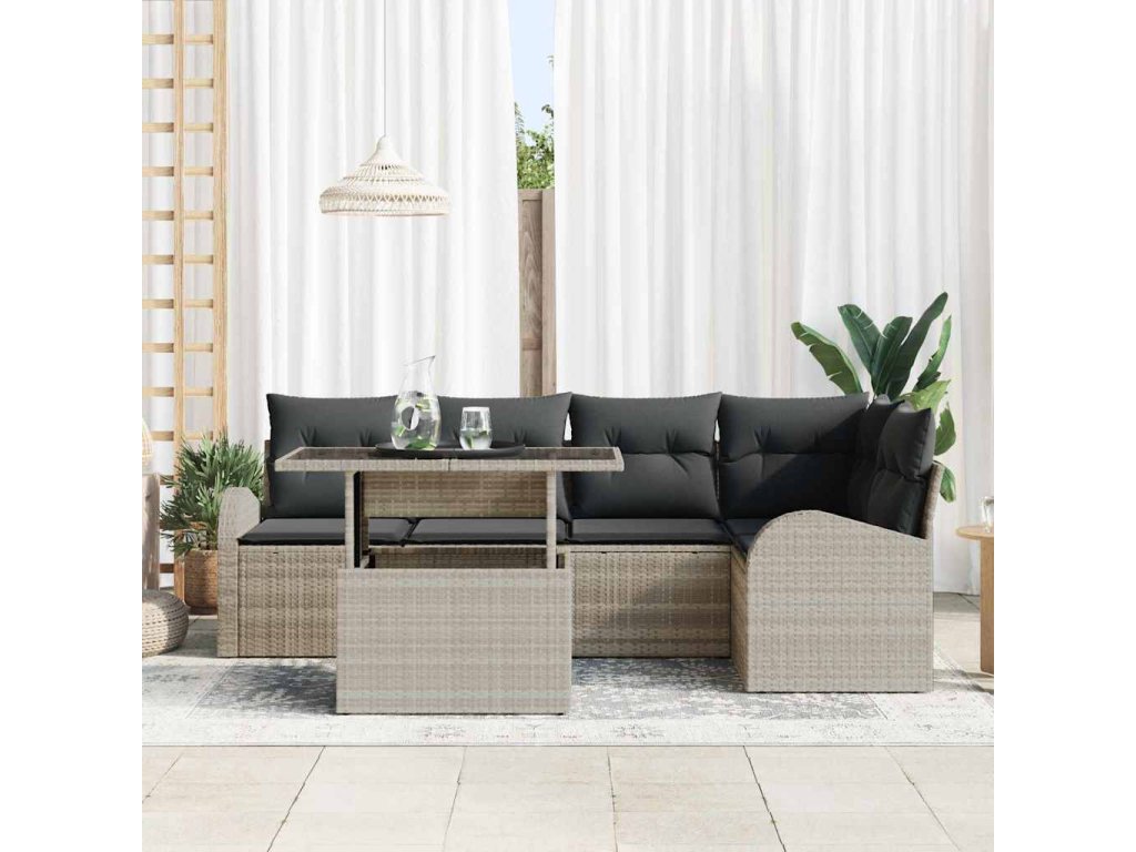 Sada zahradních pohovek 6 pcs Světle šedá Poly ratan 3357385