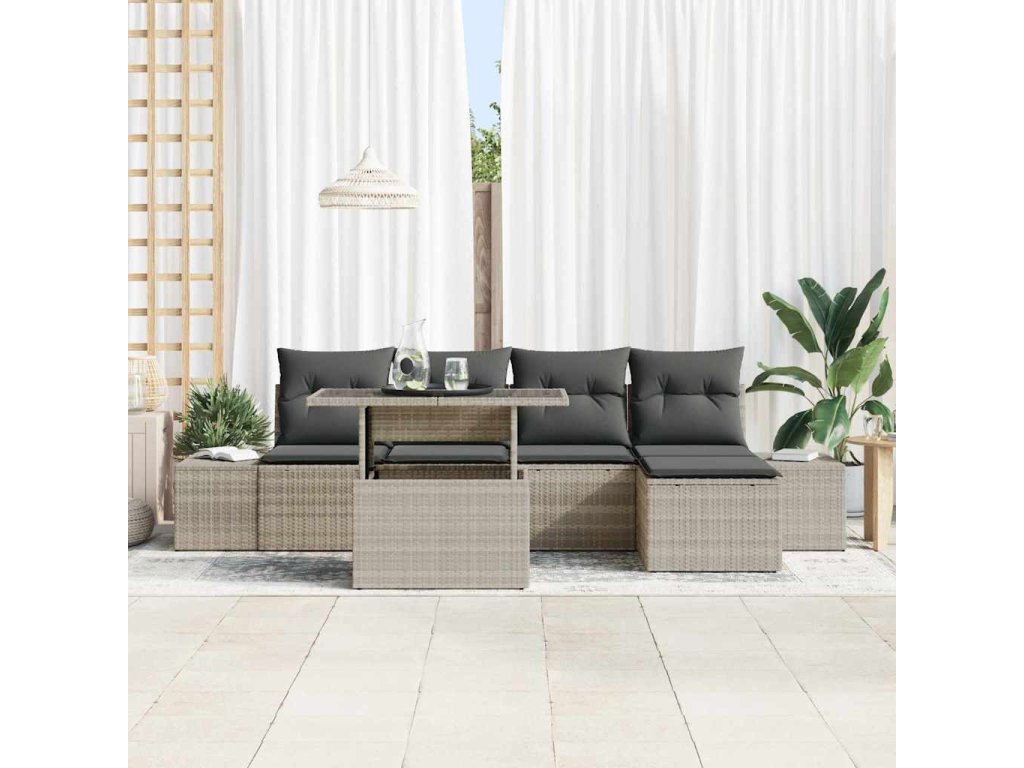Sada zahradních pohovek 6 pcs Světle šedá Poly ratan 3357905