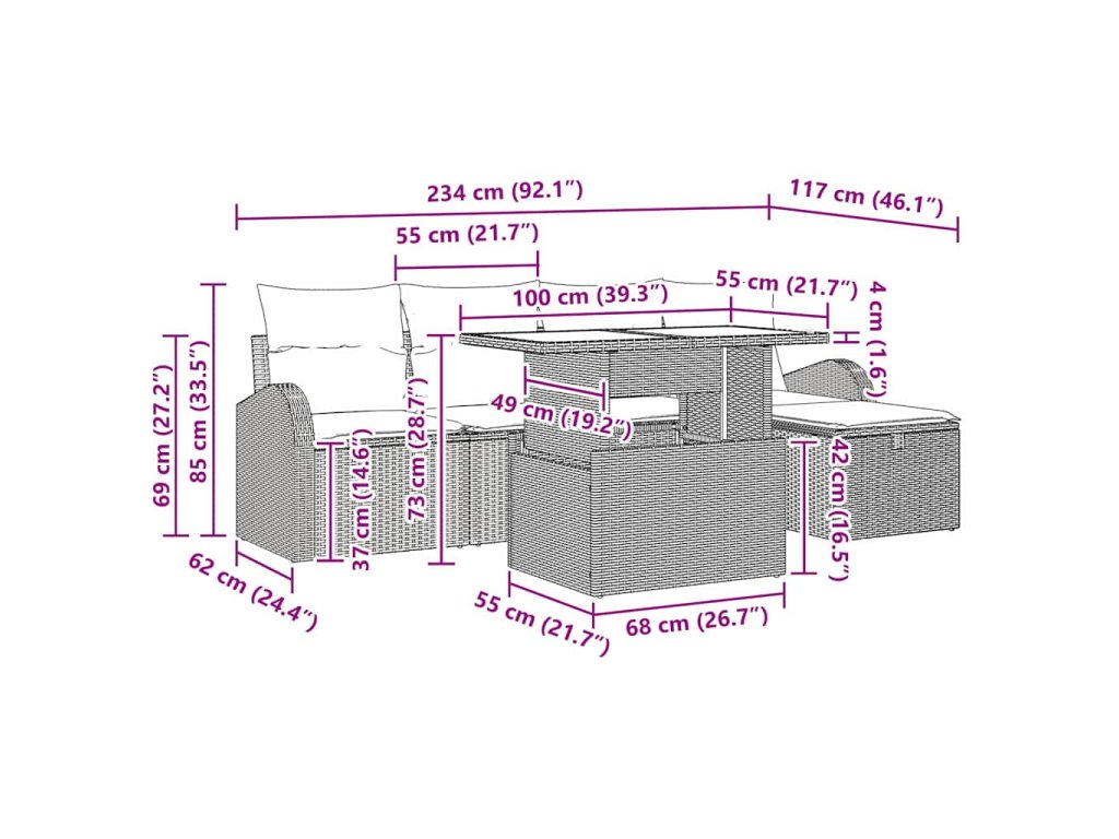 - Versatilní aplikace: Perfektní pro celé venkovní prostředí, jako jsou zahrady, terasy nebo dvorky, tato pohovková sada se bez problémů přizpůsobí různým potřebám. Její modulární struktura umožňuje flexibilní uspořádání pro akce od hostiny po klidné útočiště.