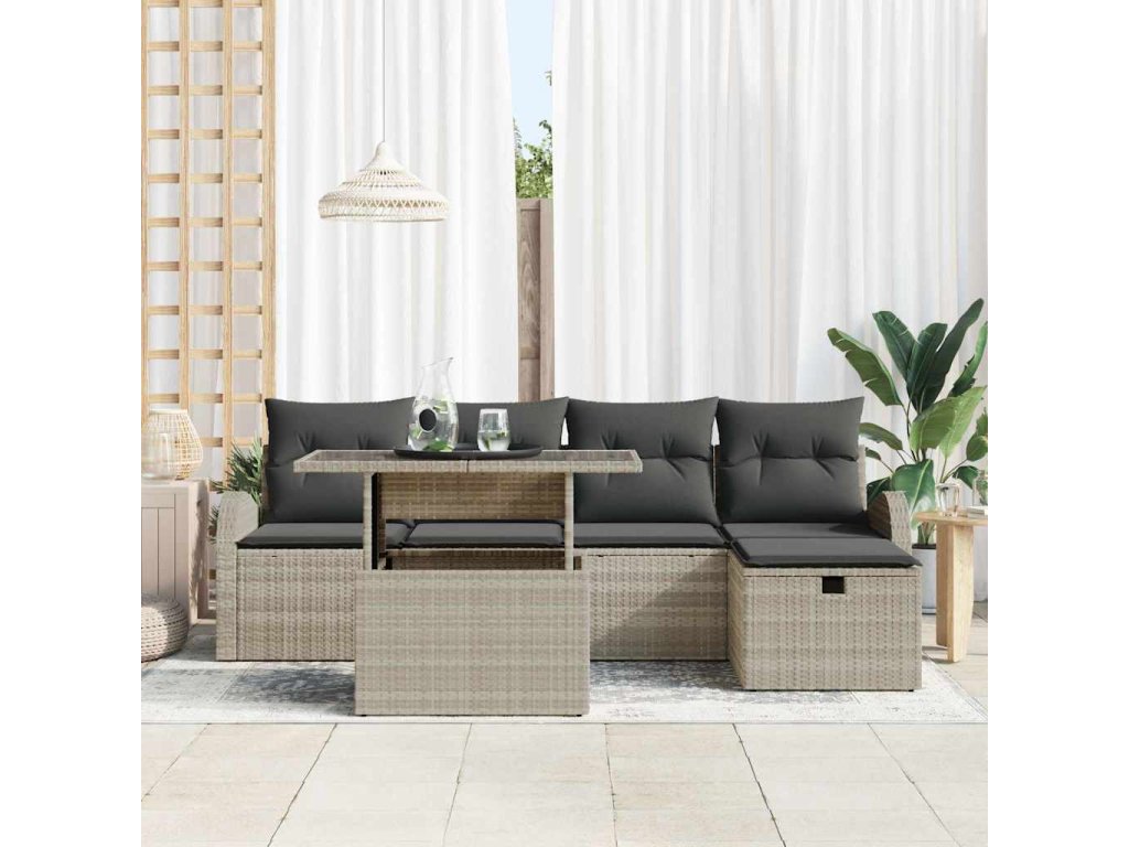 Sada zahradních pohovek 6 pcs Světle šedá Poly ratan 3359749