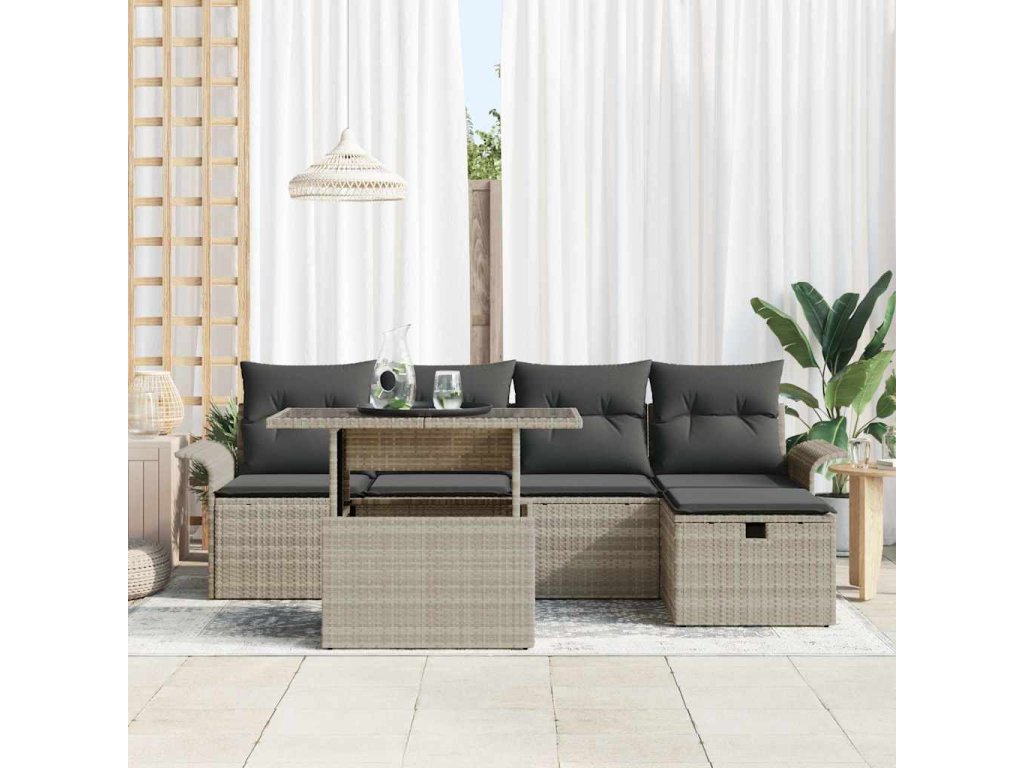 Sada zahradních pohovek 6 pcs Světle šedá Poly ratan 3361001