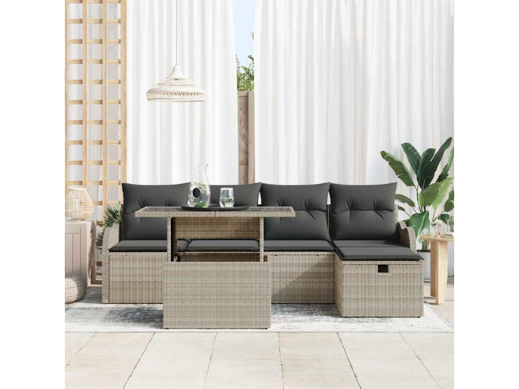 Sada zahradních pohovek 6 pcs Světle šedá Poly ratan 3361041