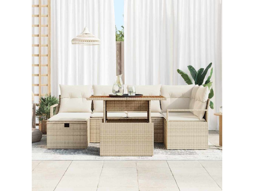 Sada zahradních pohovek 7 pcs Béžová polyratan 3361330