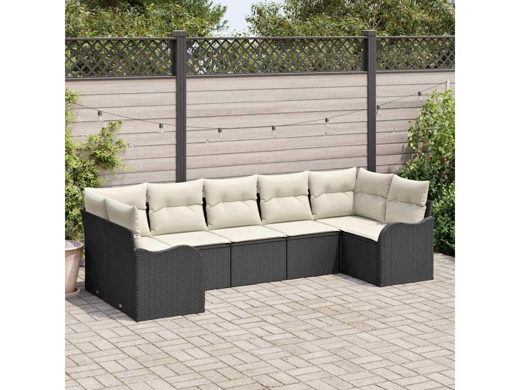 Sada zahradních pohovek 7 pcs Černá a bílá Poly ratan 3354516