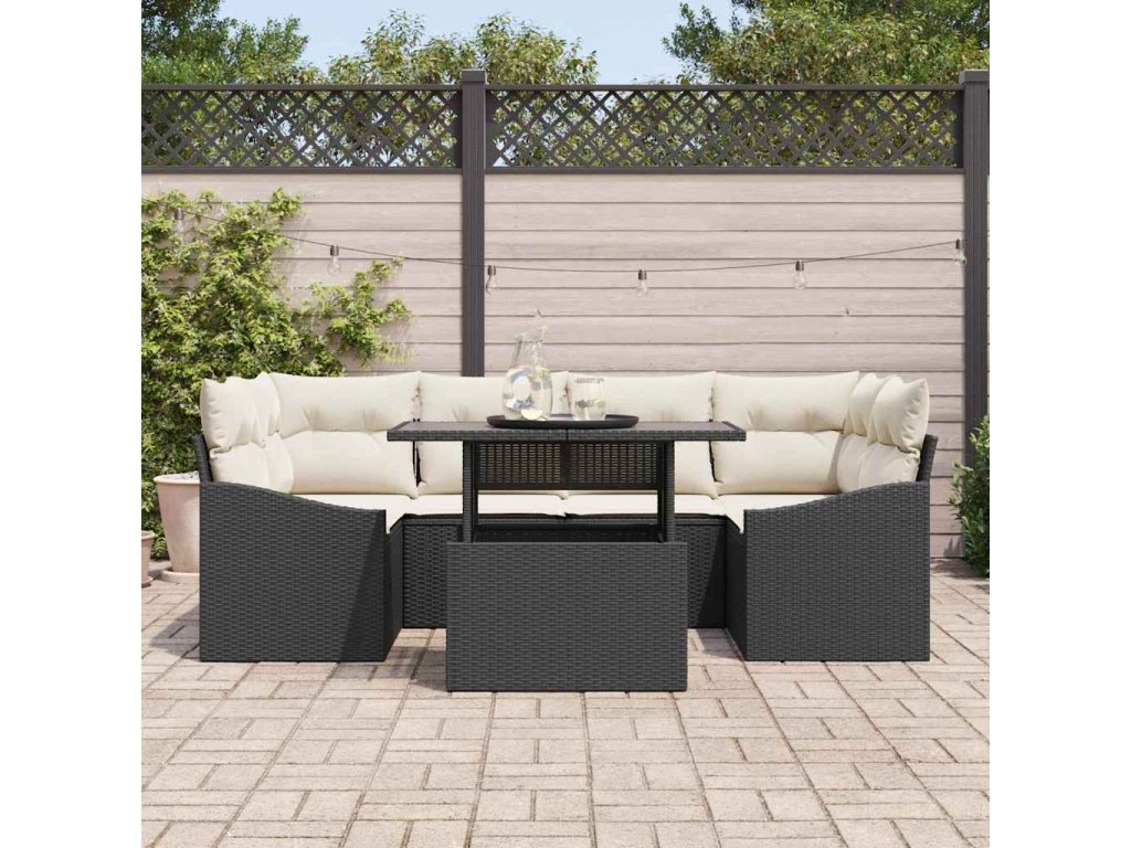 Sada zahradních pohovek 7 pcs Černá a krémová polyratan 3348933