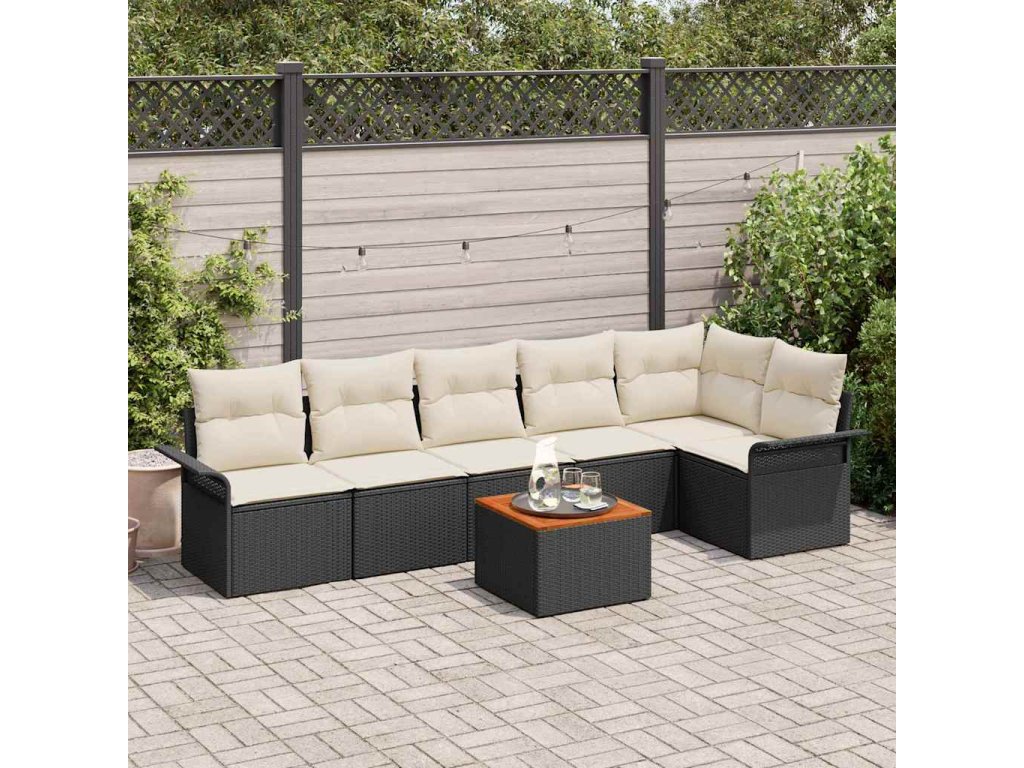 Sada zahradních pohovek 7 pcs Černá a krémová polyratan 3356003