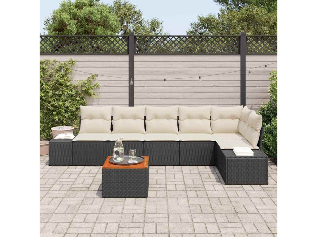 Sada zahradních pohovek 7 pcs Černá a krémová polyratan 3356633