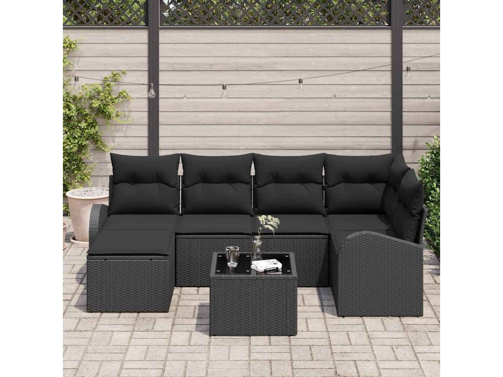 Sada zahradních pohovek 7 pcs Černá polyratan 3346123