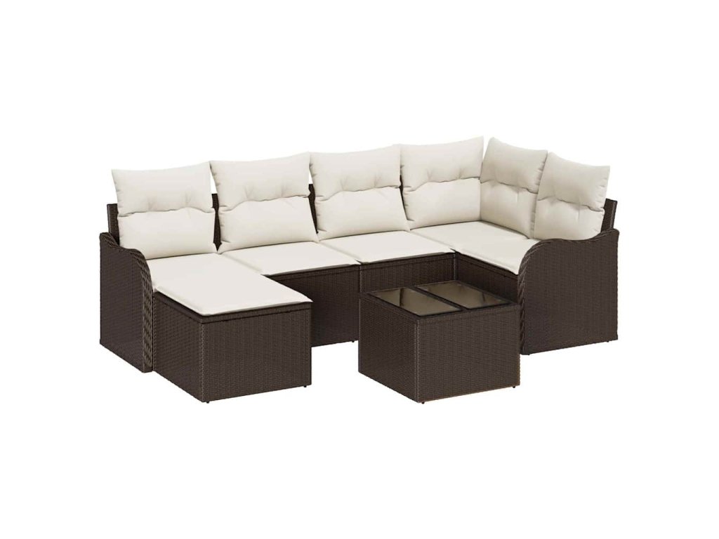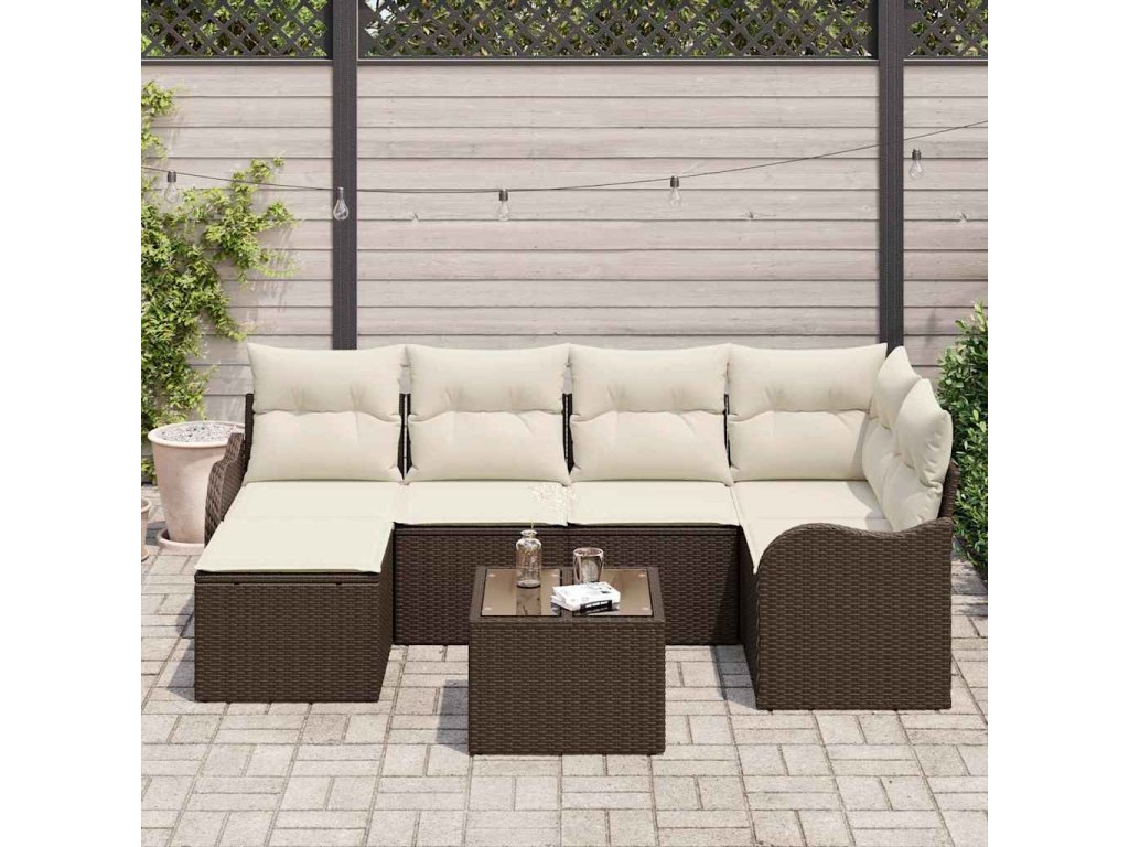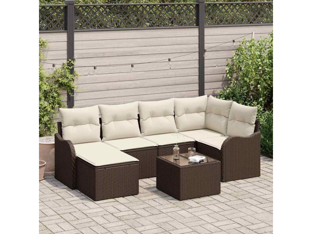 Sada zahradních pohovek 7 pcs Hnědá a bílá Poly ratan 3354447