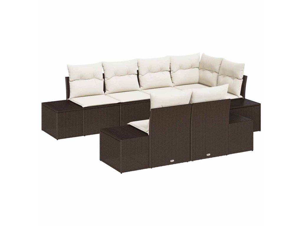 Sada zahradních pohovek 7 pcs Hnědá a krémová Poly ratan 3347098