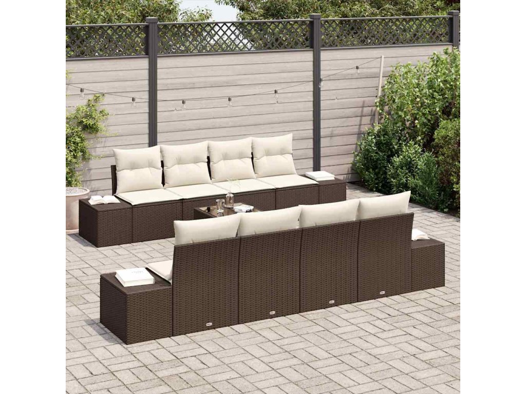 Sada zahradních pohovek 7 pcs Hnědá a krémová polyratan 3346988