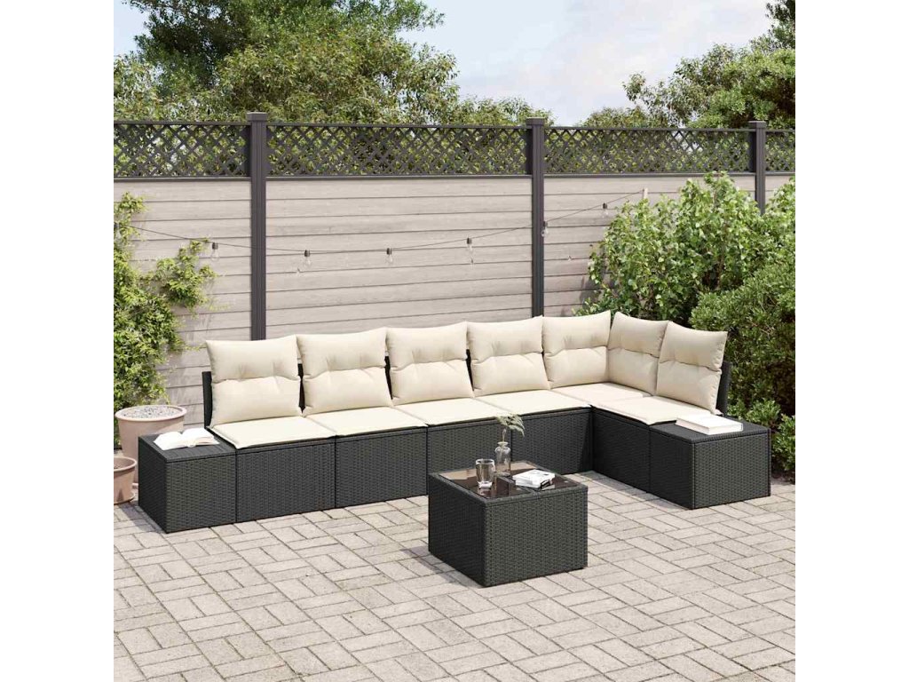 Sada zahradních pohovek 7 pcs Hnědá a krémová polyratan 3355756