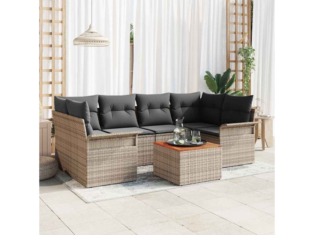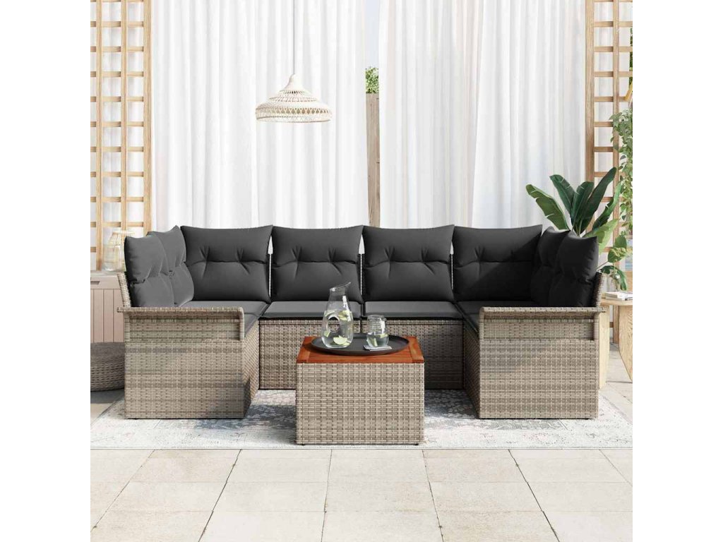 Sada zahradních pohovek 7 pcs Šedá Poly ratan 3347279