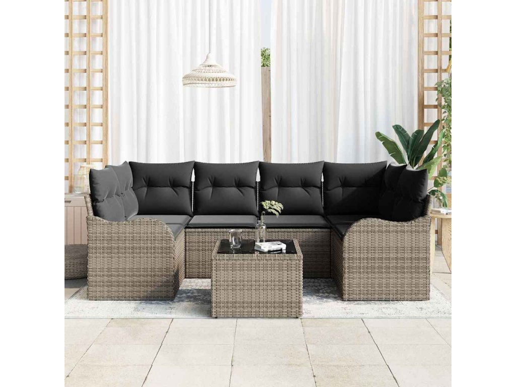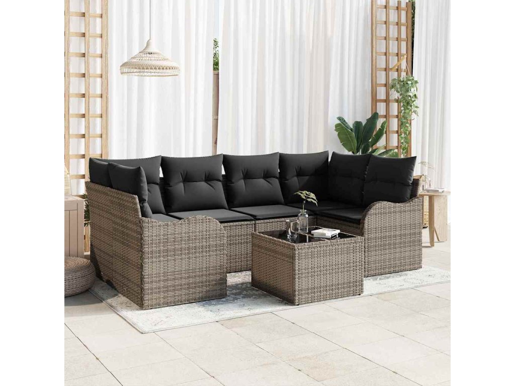 Sada zahradních pohovek 7 pcs Šedá Polyratan a ocel a sklo 3354268
