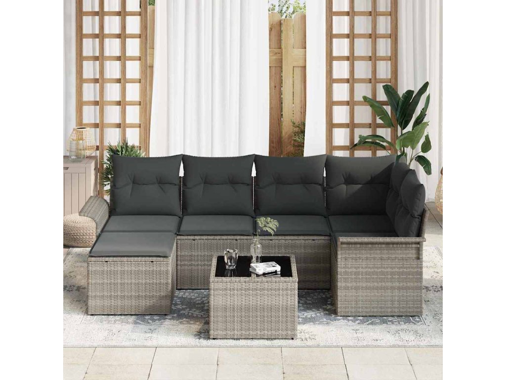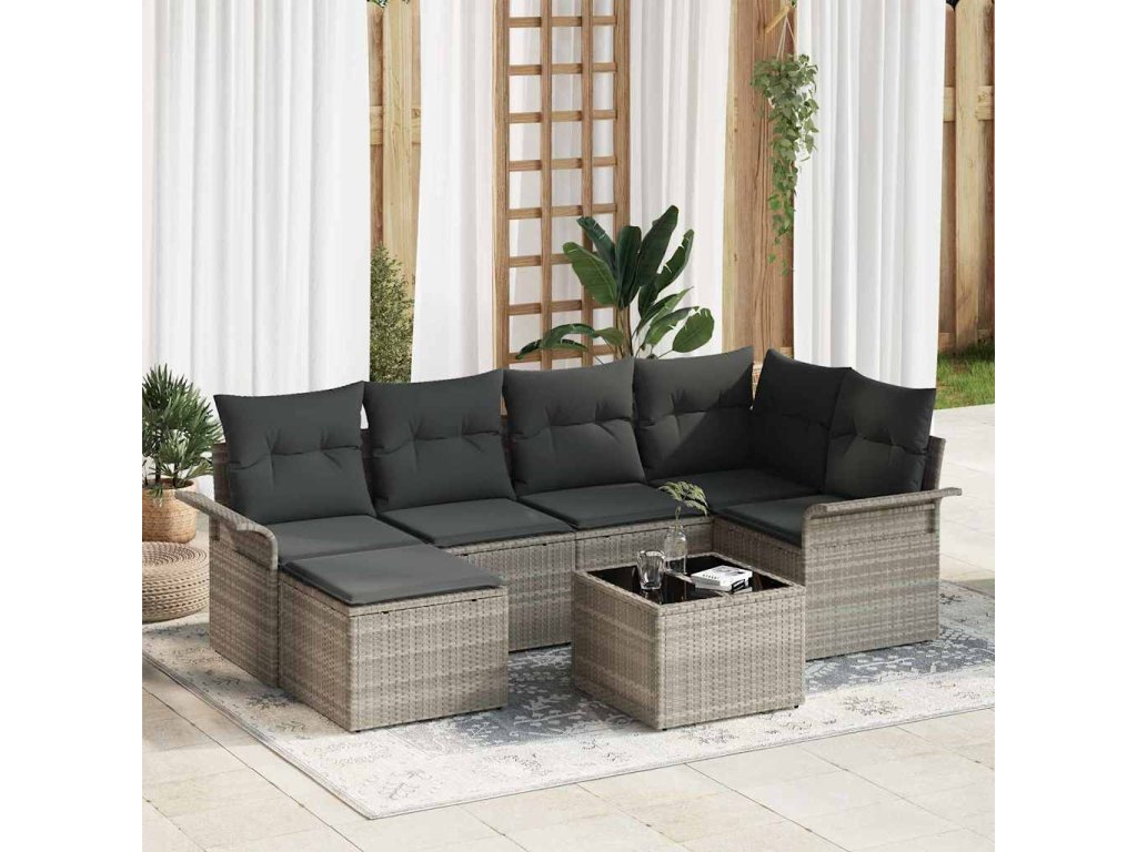 Sada zahradních pohovek 7 pcs Světle šedá Poly ratan 3345442