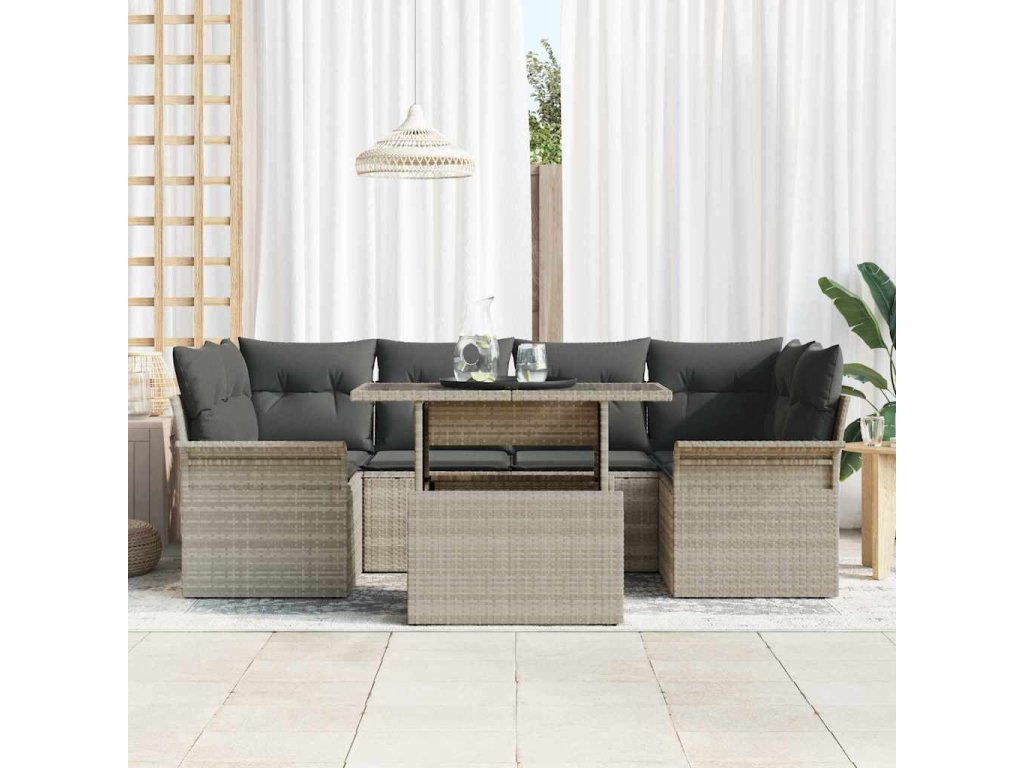 Sada zahradních pohovek 7 pcs Světle šedá Poly ratan 3348218