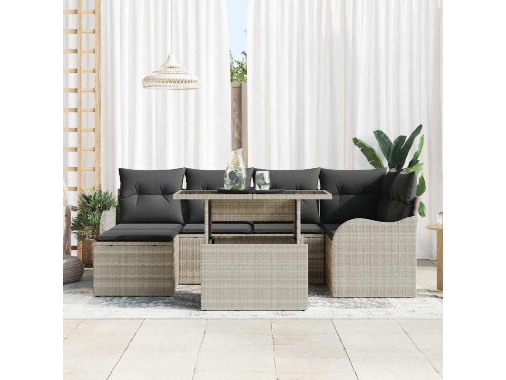Sada zahradních pohovek 7 pcs Světle šedá Poly ratan 3348498