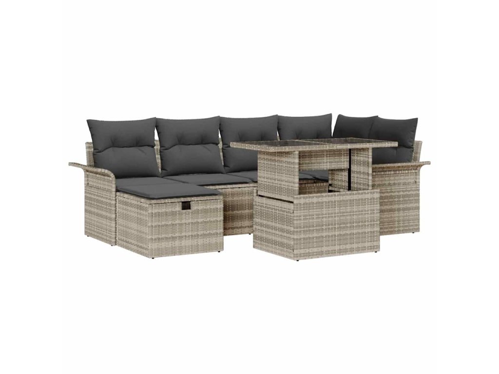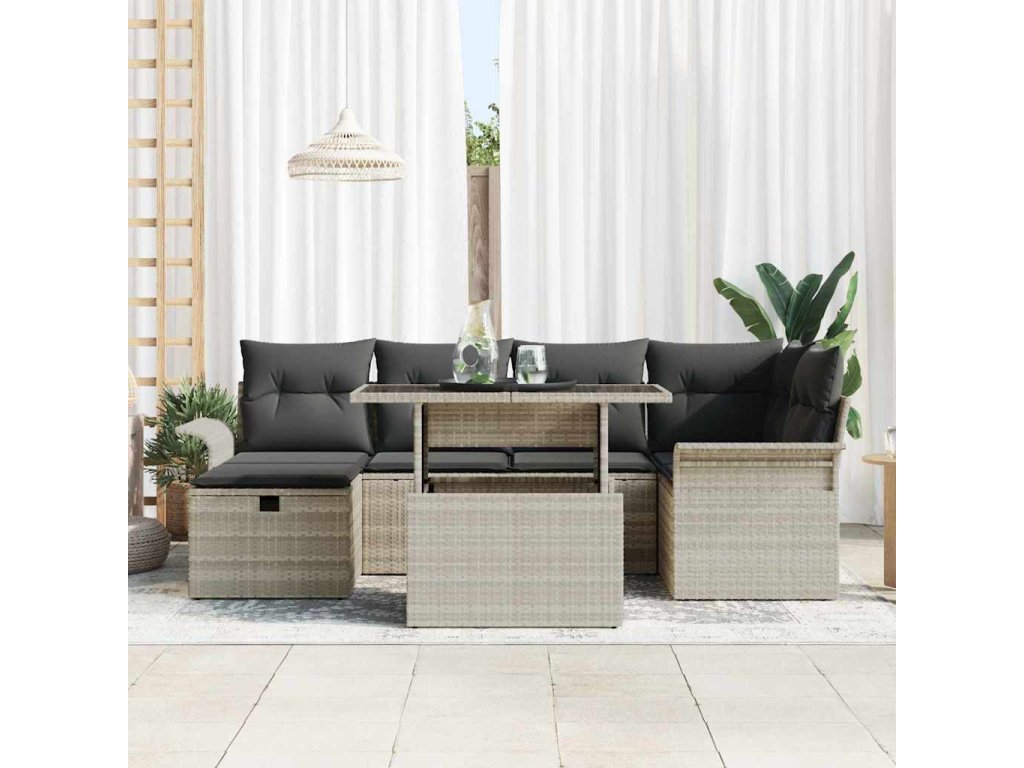 Sada zahradních pohovek 7 pcs Světle šedá Poly ratan 3359679