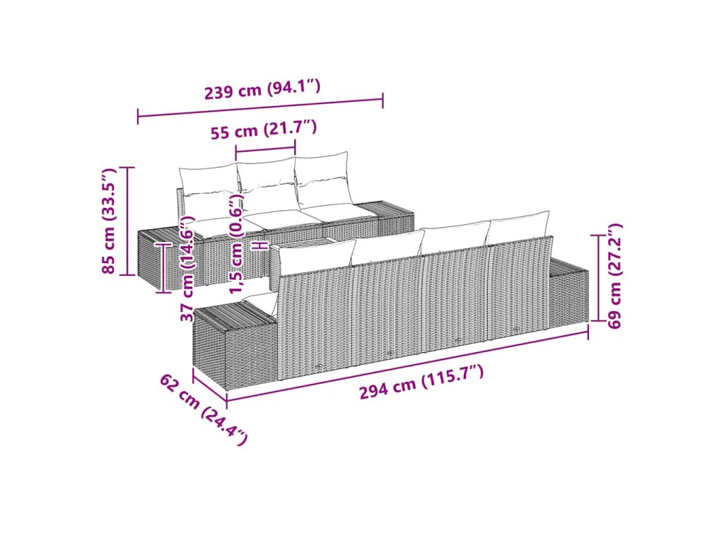 Tato modulární zahradní souprava promění vaše venkovní prostory na relaxační místo s moderním designem a multifunkčními prvky. Kombinuje jednoduchost a praktičnost s čistými liniemi a málo ornamenty, takže se hodí na zahrady i terasy. Přizpůsobivý design zaručuje maximální pohodlí a užitek. Zpracování je precizní a dává každému kusu třídu. Tato souprava je ideální pro ty, kdo ocení estetiku i praktičnost a bude skvělým středobodem, který obohatí jakékoli venkovní prostředí.