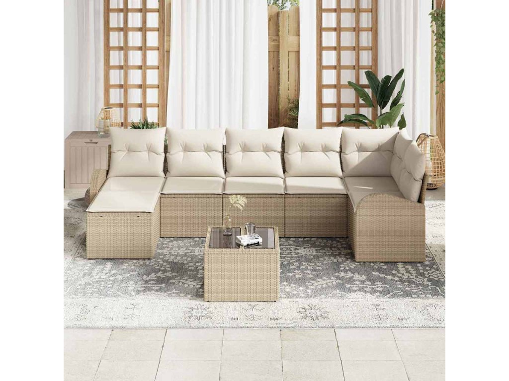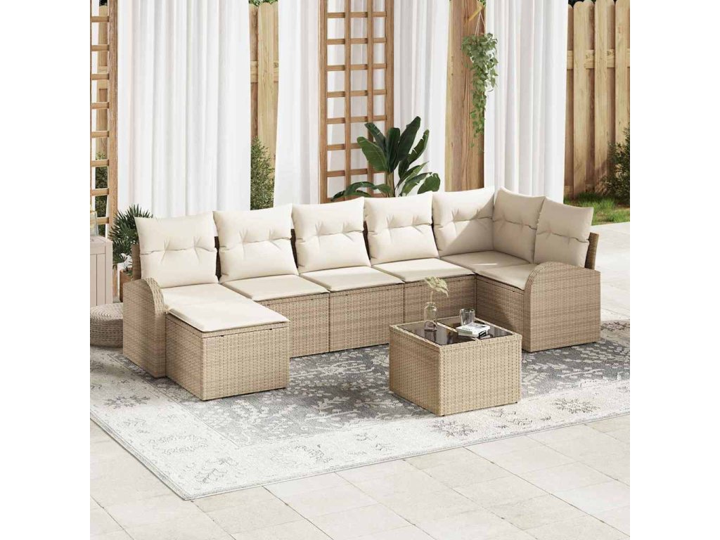 Sada zahradních pohovek 8 pcs Béžová Poly ratan 3354810